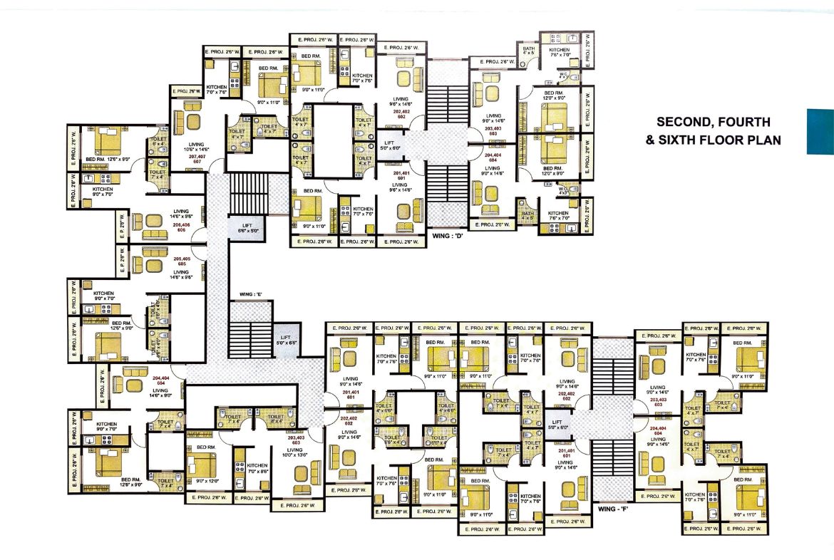 Wing D boasts 30 1BHK of 530-695 square feet.